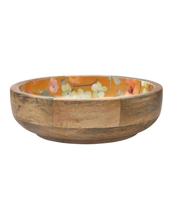 Bol à fruits en bois rustique et écologique WOQI avec bord festonné pour table basse, centre de table ou présentation de nourriture pour les fêtes