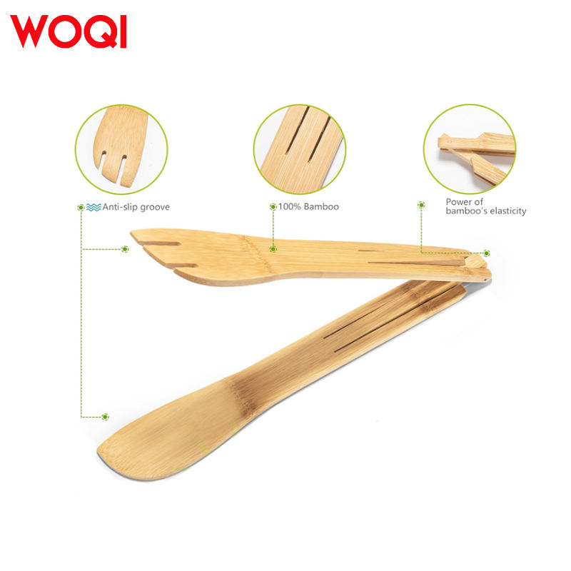 WOQI vente d'usine pince en bois pliable personnalisée avec spatule en bois pince pelle pince pour salade pain