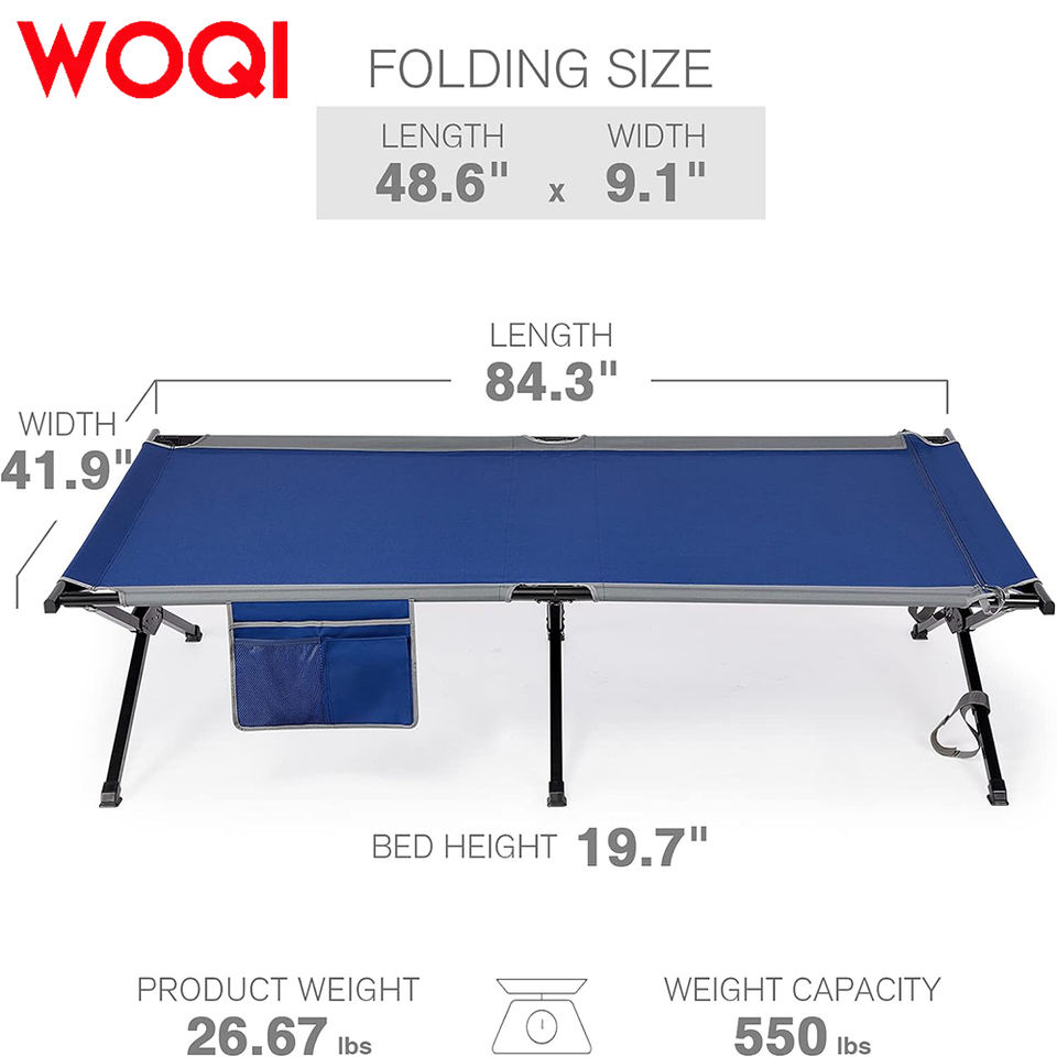 WOQI Lit de camping pliable portable ultra léger et compact à hauteur réglable pour adultes