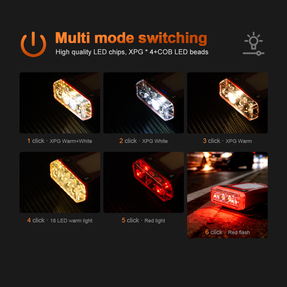 Lampe frontale LED rechargeable WOSEN Cob avec lumière latérale, mini lampe torche portable à clip pour casquette, lumière blanche, intensité réglable, étanche, pour la pêche