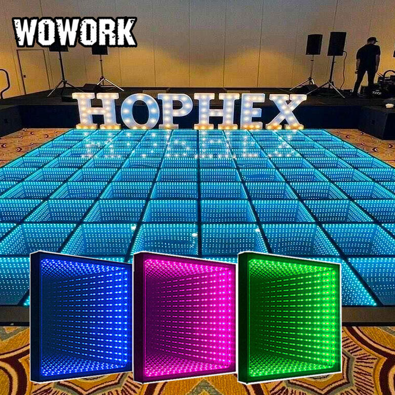 WOWORK Vente flash Panneau lumineux personnalisé en métal fer forgé pour DJ, mariage, piste de danse LED, effet miroir infini 3D magnétique pour photomaton