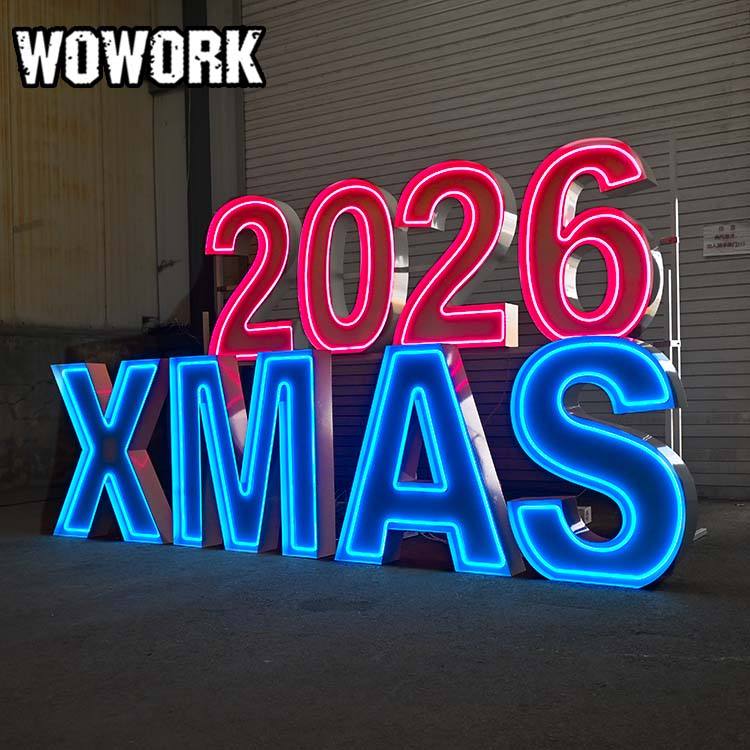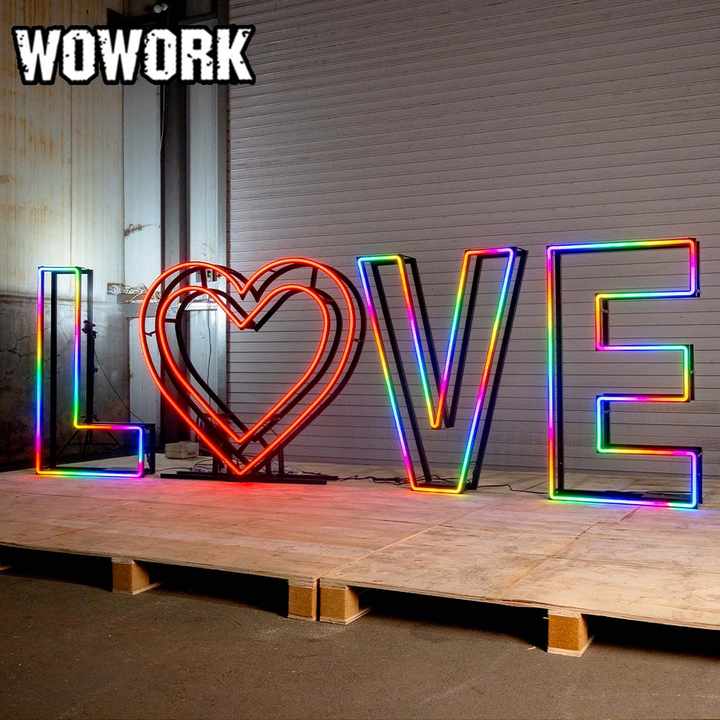 WOWORK Cadre néon LED RGB métallique pliable de grande taille (1,2 m et 1,5 m) avec lettres et chiffres lumineux et panneau mural scintillant pour fêtes