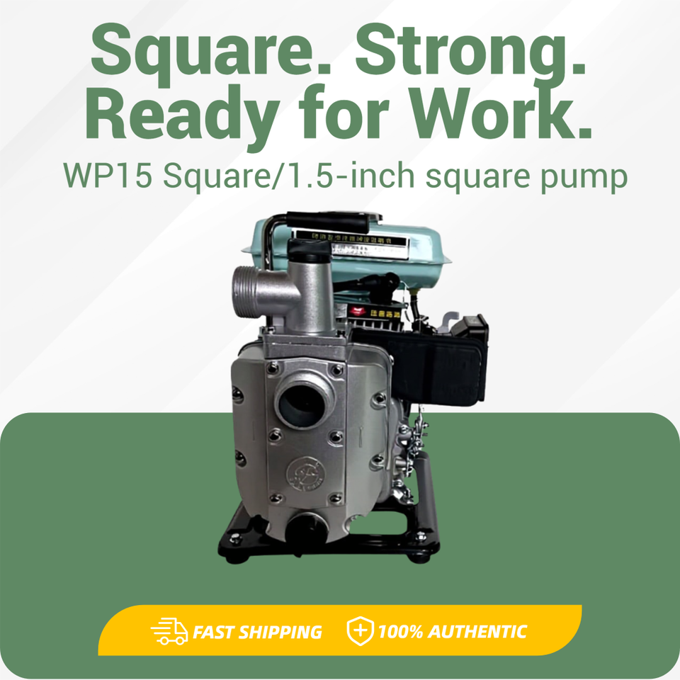 Pompe à eau utilitaire carrée WP15 - Pompe à essence 1,5'' 2,5 CV pour drainage de chantier, refroidissement d'équipements et usage industriel léger