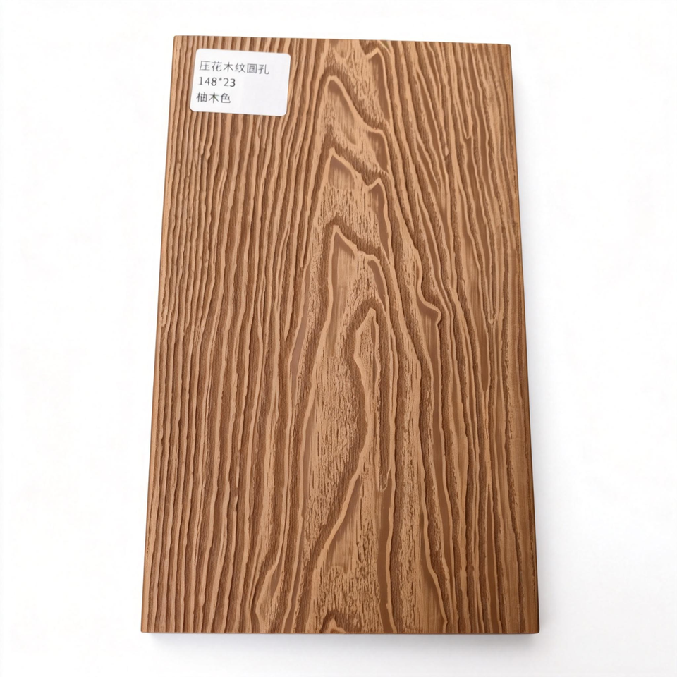 Planche de terrasse en composite WPC, revêtement de sol extérieur, structure à trous ronds, sol en bois plastique durable pour jardin, terrasse