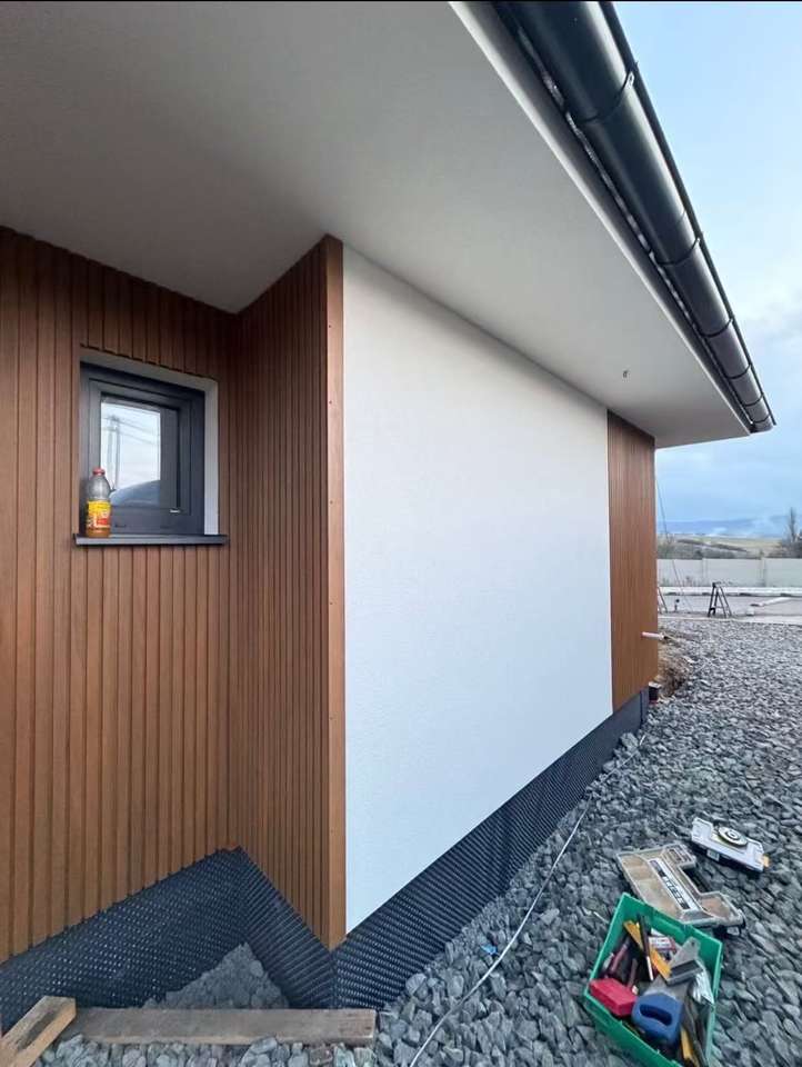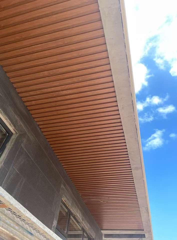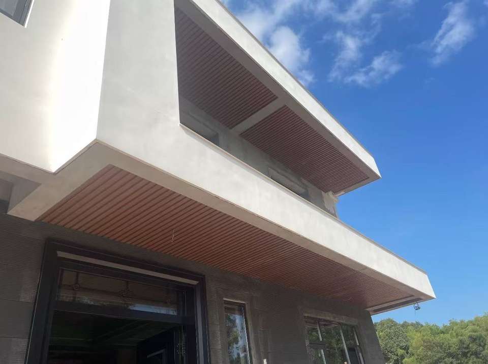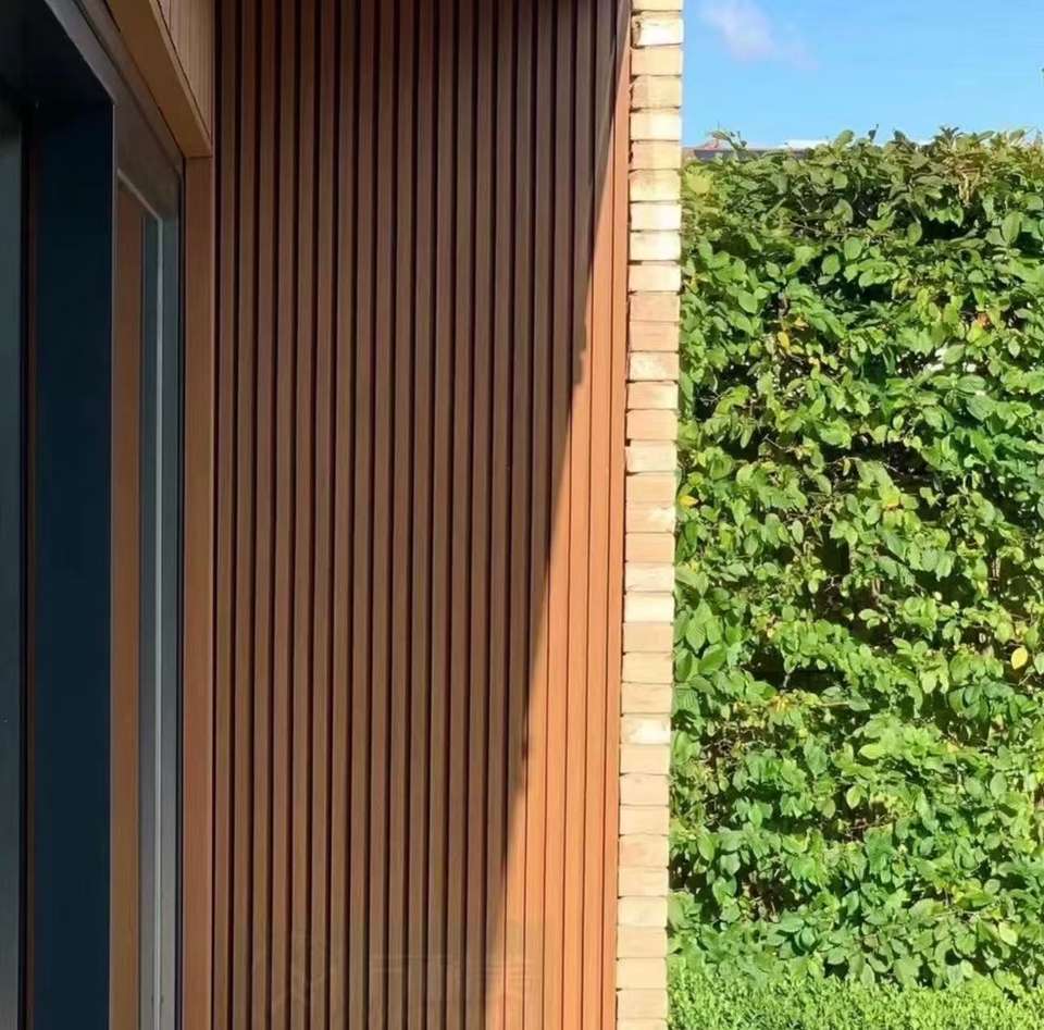 Revêtement mural moderne ignifuge en WPC pour la décoration extérieure, matériaux d'extérieur avec design cannelé et utilisation en villa