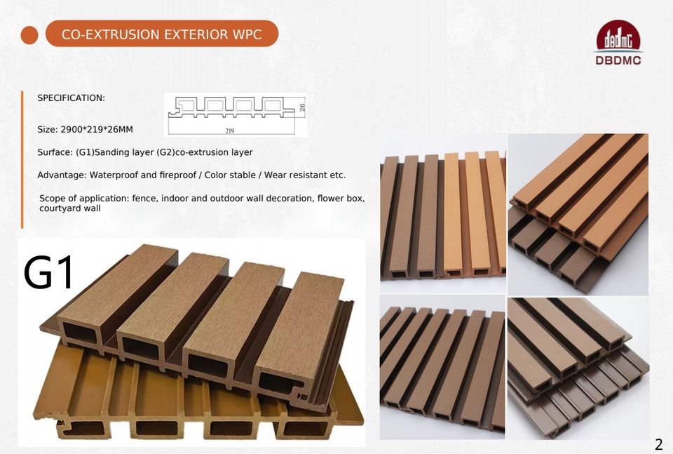 Panneaux muraux rainurés en WPC, co-extrusion bois-plastique composite, revêtement mural à lattes pour extérieur