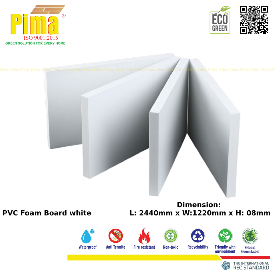 Feuille de panneau de mousse de PVC de WPC 0.6G/cm3 densité 8mm épaisseur panneaux en plastique polyvinyle résistants au feu de couleur blanche pour l'extérieur