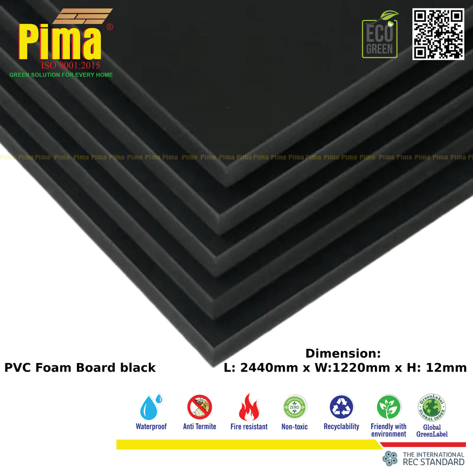 Feuille de panneau de mousse de PVC de WPC 15mm couleur noire 0.6G/cm3 matières plastiques légères de densité pour les meubles intérieurs