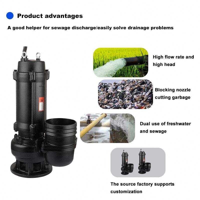 Pompe centrifuge submersible électrique auto-amorçante WQ anti-colmatage de 4 pouces pour eaux usées et boues, 20 CV, en fonte, avec broyeur