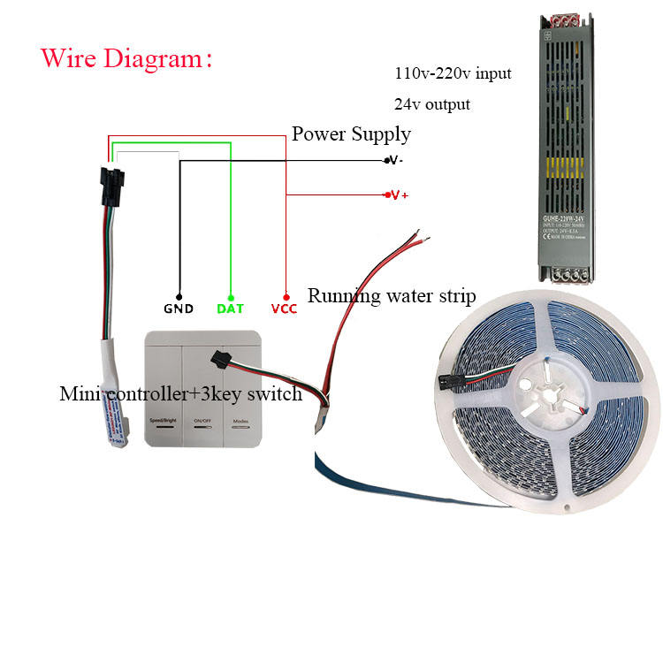 Ruban LED WS2811 8mm 10M DC24V 120 LED/M, Effet de Chasse, Sécable, Panneau Tactile avec Bande Lumineuse à Effet d'Eau Courante