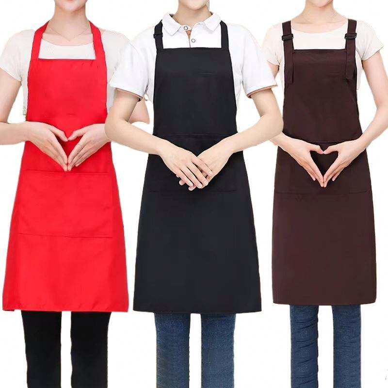 WSY353 Tabliers de cuisine en coton et polyester pour hommes et femmes, personnalisables avec logo, noirs, vierges, pour restaurants