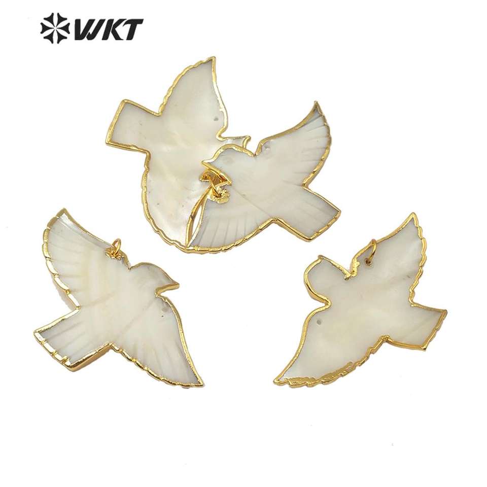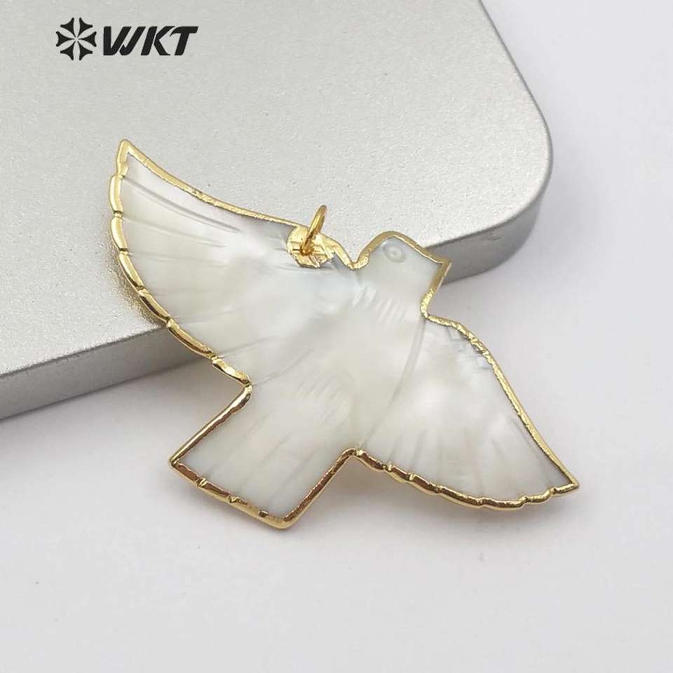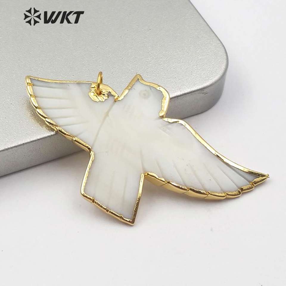 WT-JP184 Gros Naturel Pigeon Coquille Pendentif 18k Plaqué Or Mode Dame Charme Bijoux Pigeon Forme Pendentif En Coquille