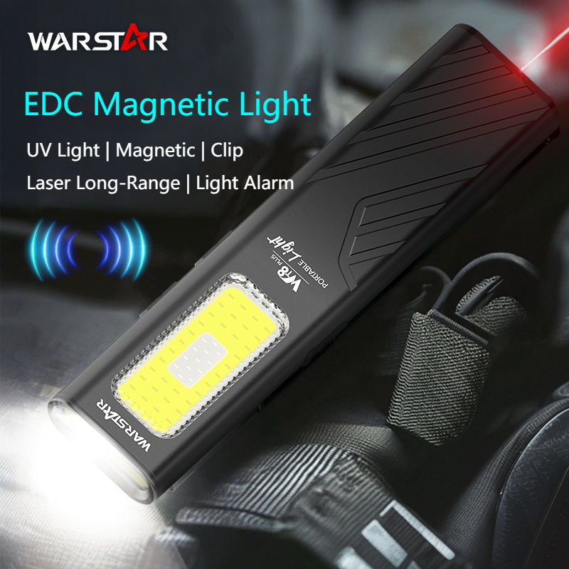 Lampe de travail LED miniature WT8 avec lumière latérale COB, 800 lumens, laser rouge magnétique, lampe torche portable pour la randonnée