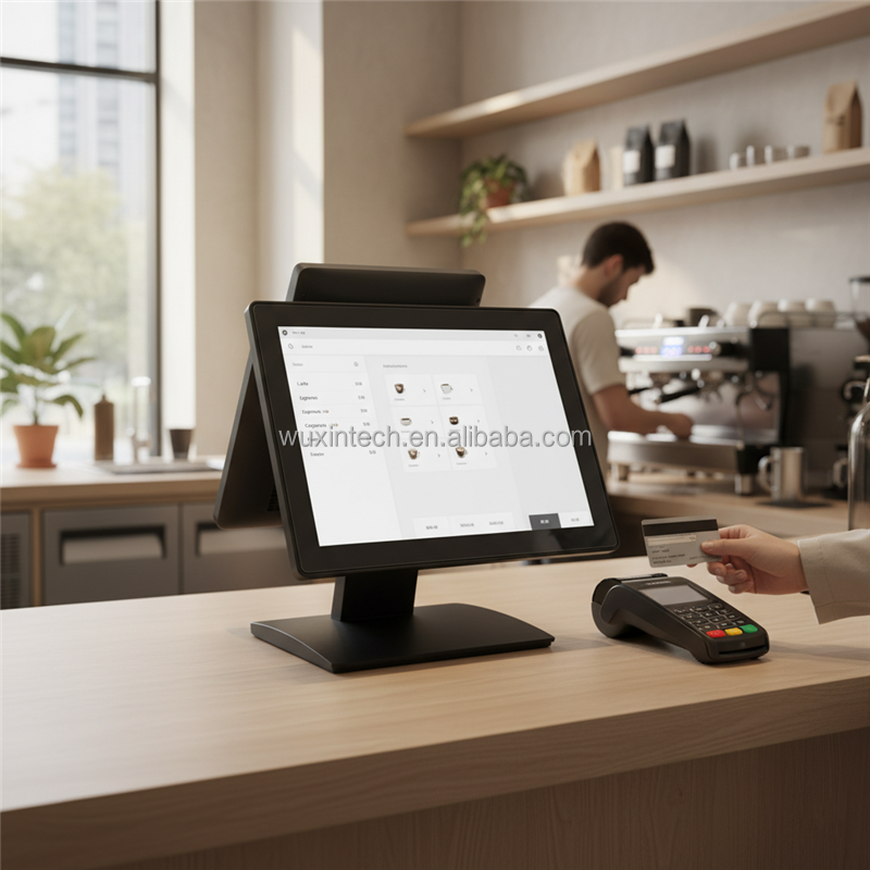 Système de point de vente tout-en-un WUXIN 15,6 pouces, écran tactile capacitif, Bluetooth 5.2, imprimante compatible, machine de point de vente pour restaurants et commerce de détail
