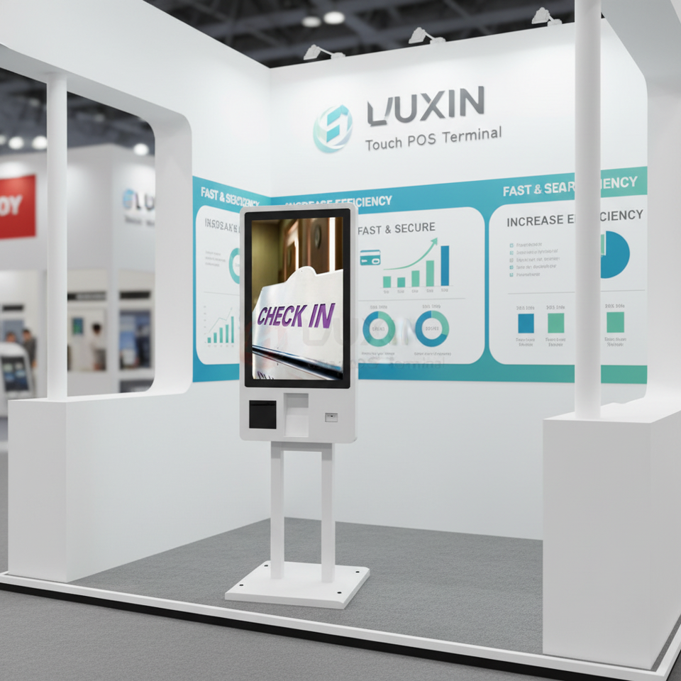 Kiosque de paiement automatique à écran tactile WUXIN de 27 pouces, pour l'intérieur, sur pied, avec commande de nourriture en libre-service pour les restaurants