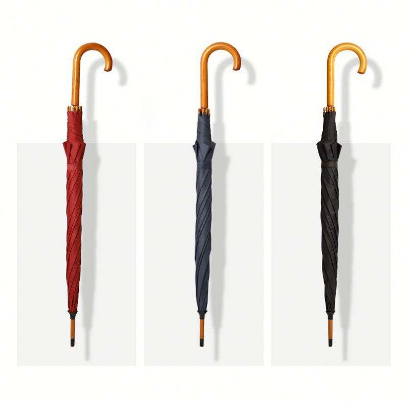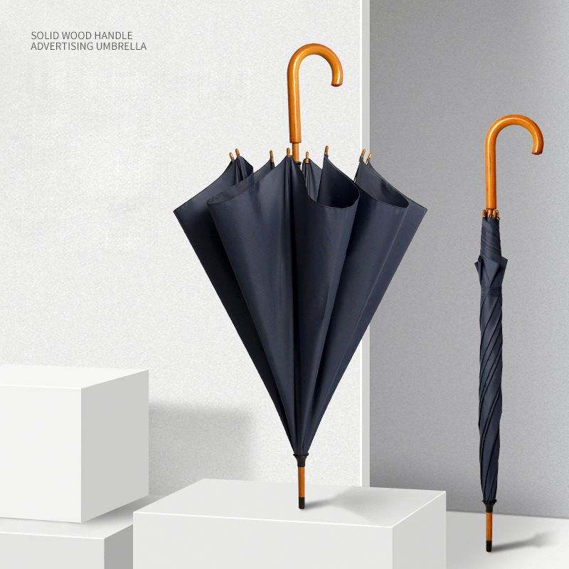 Parapluie de golf haut de gamme WW6322 avec logo personnalisé, poignée droite, parapluie sculpté avec poignée en bois et logo