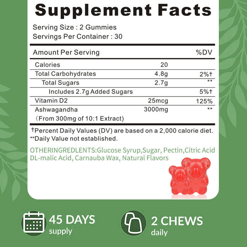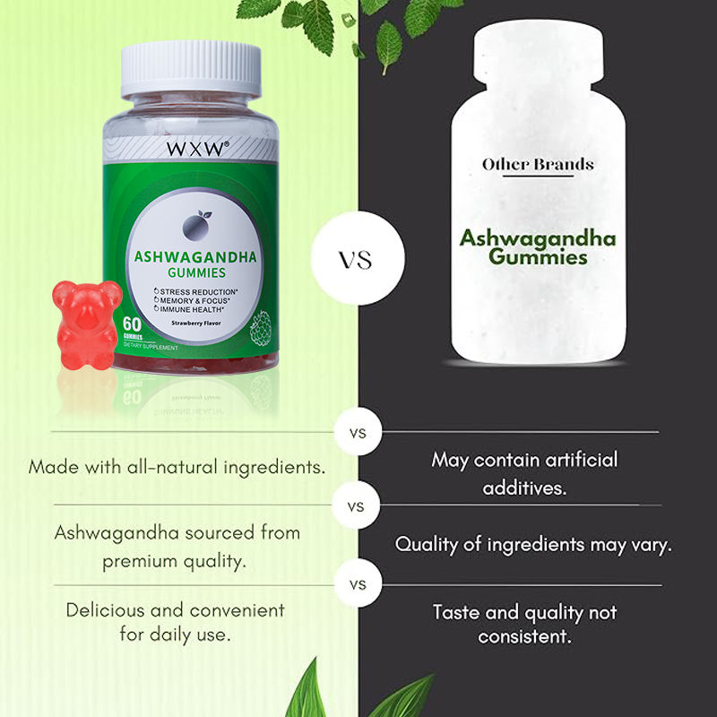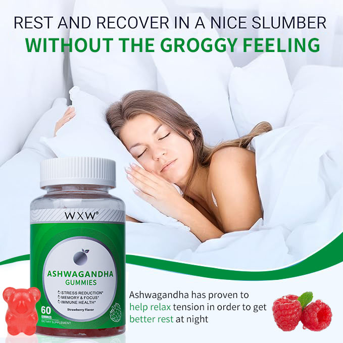 WXW Stock Support Focus Mémoire Ashwagandha Gummies Supplément Ashwagandha Maca Racine Extract Gummies Supplément