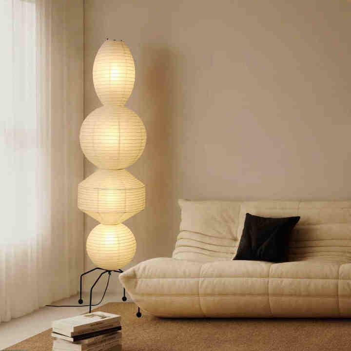 Wabi-Sabi meubles grand abat-jour en papier LED boule de papier de riz lampadaires pendentif pour salon chambre Loft décor à la maison