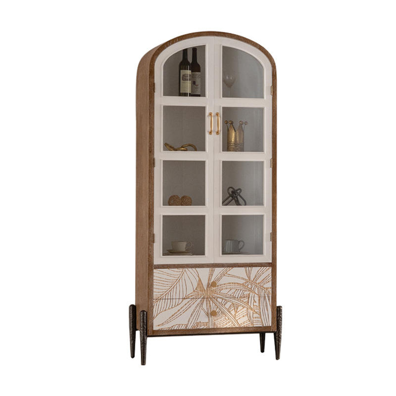 Meuble d'entrée rétro style Wabi Sabi avec portes vitrées et rangements pour salon
