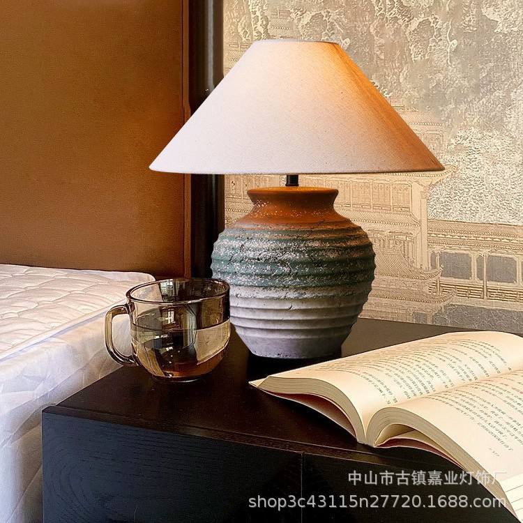 Lampe de table de style Wabi-Sabi, Nouveau style chinois, japonais, américain, français, céramique vintage, pot en terre cuite rétro, chambre à coucher design