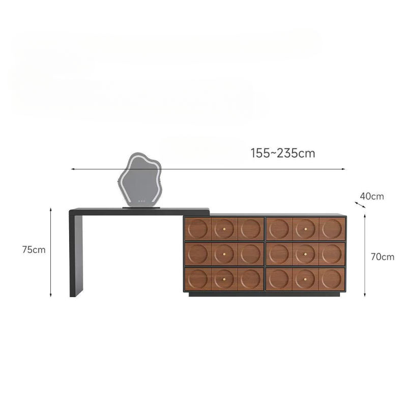 Coiffeuse de style Wabi-Sabi avec commode intégrée, table de maquillage en bois massif, style crème français d'angle