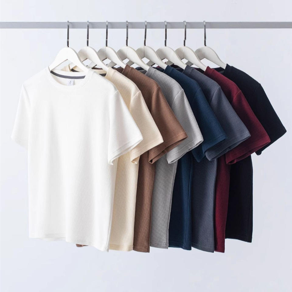 T-shirt d'été décontracté pour homme à manches courtes, col rond, uni, respirant, en polyester, coupe ample, résistant à l'usure