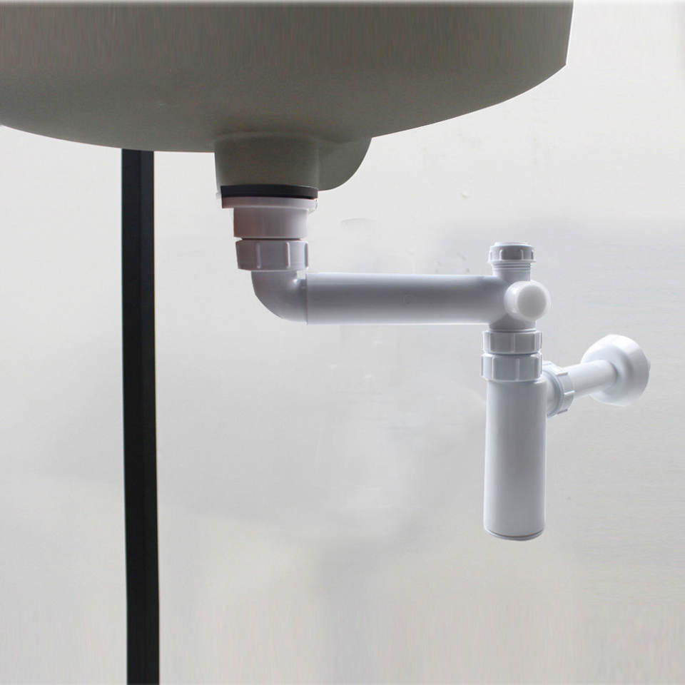 Système de siphon anti-odeur WaiiHO 026 Classic en PP pour drainage mural, avec siphon en U