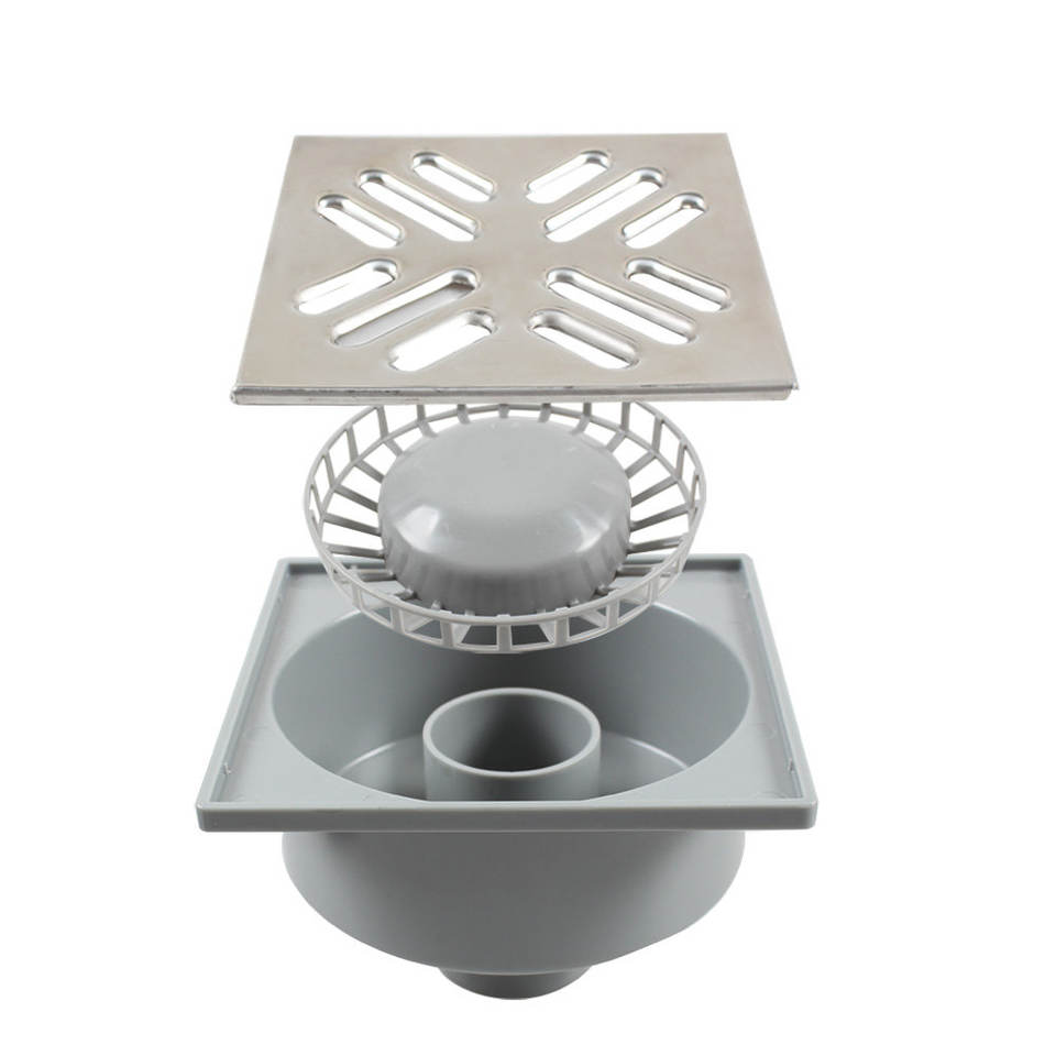 WaiiHO 032 Siphon de sol carré moderne en acier inoxydable 304 avec filtre anti-colmatage, faible entretien, minimaliste, installation facile