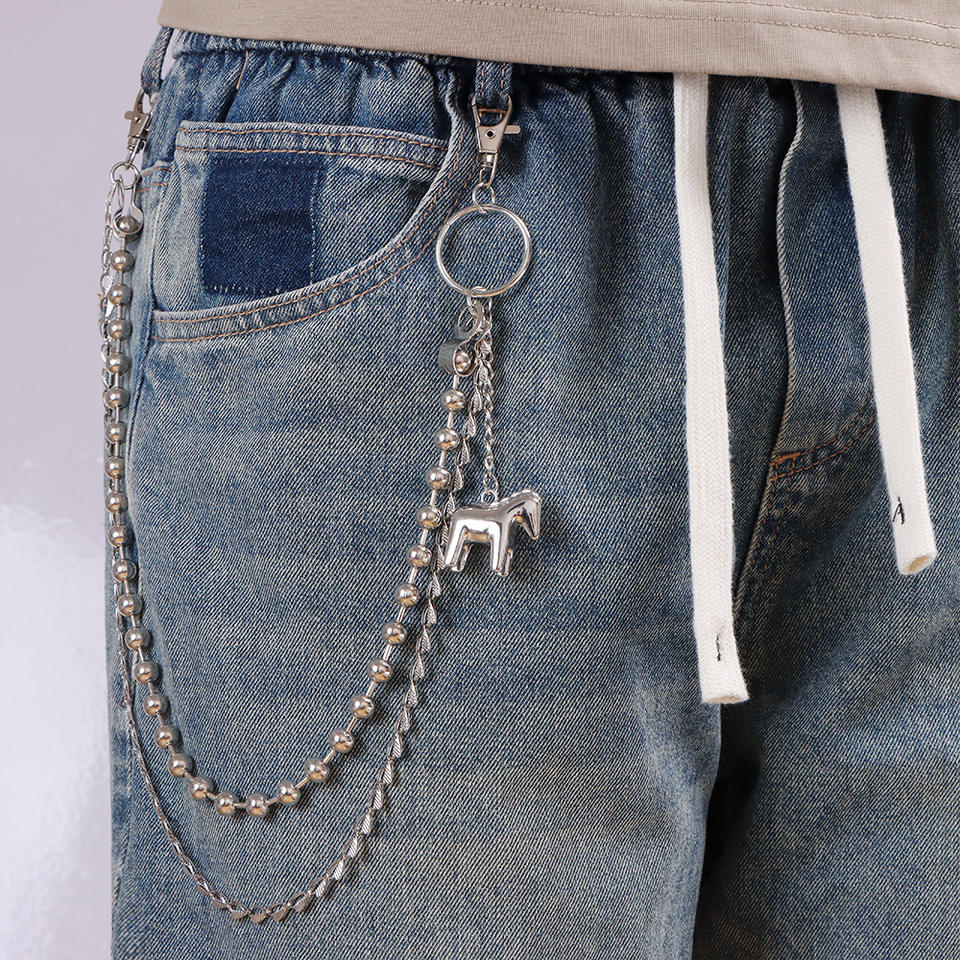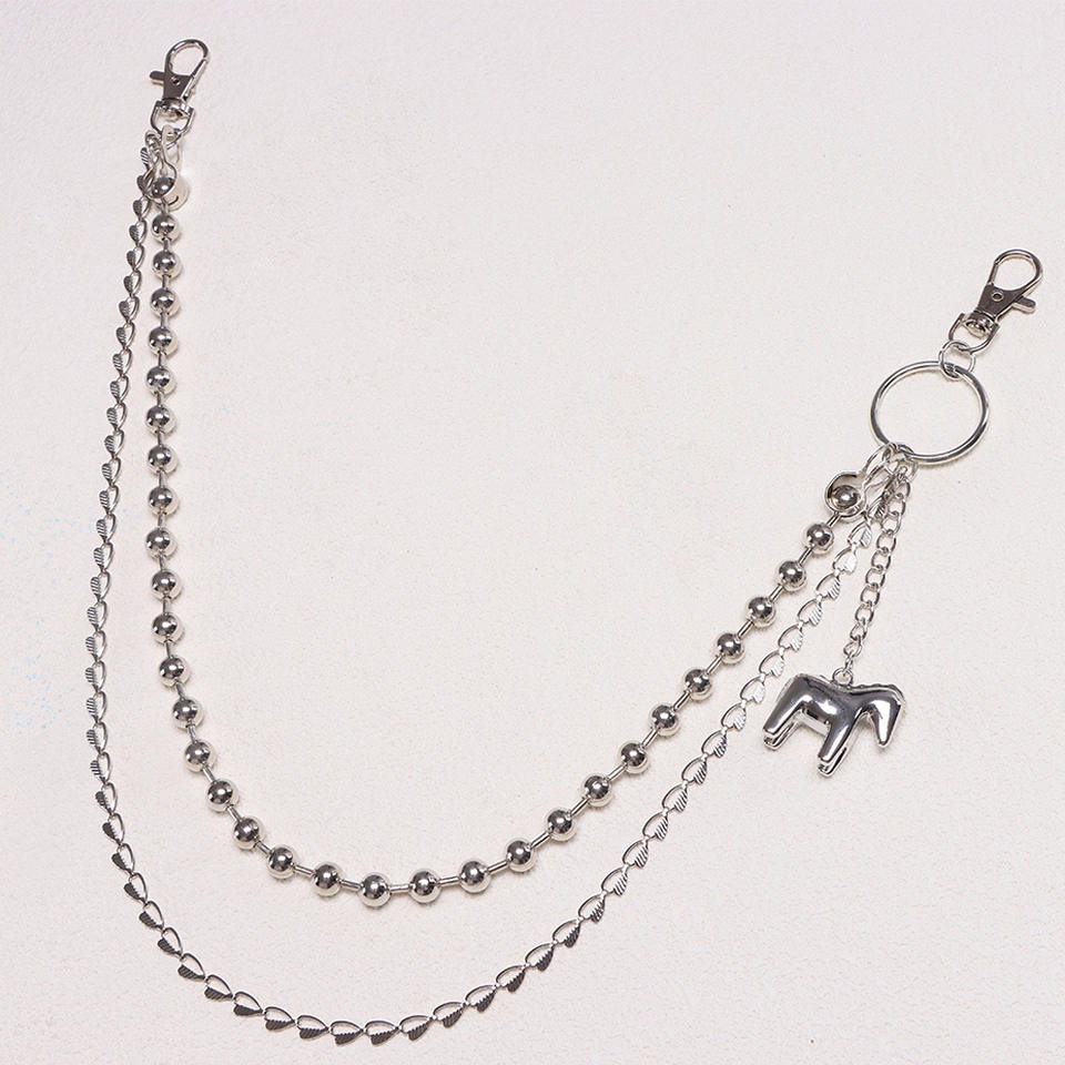 Chaîne de taille double couche en alliage de zinc avec perles métalliques et pendentif animal, style punk, unisexe, accessoire décontracté pour jean
