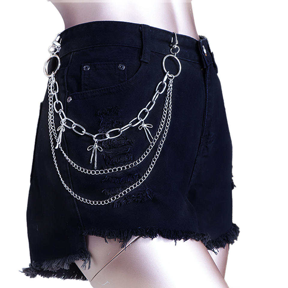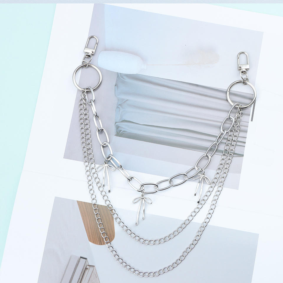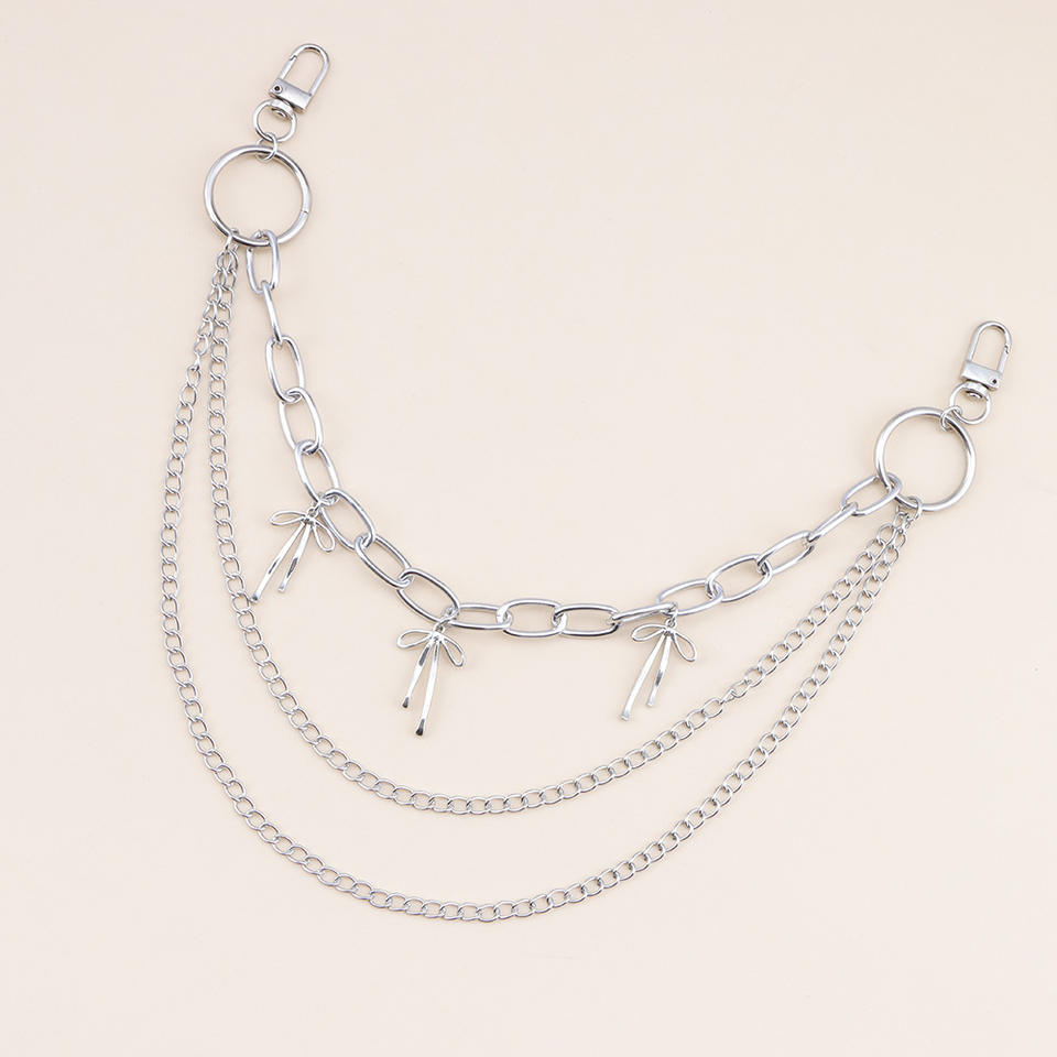 Chaîne de taille multicouche en métal, anneau géométrique, design nœud hip-hop pour femme, accessoire de mode décontracté pour pantalon