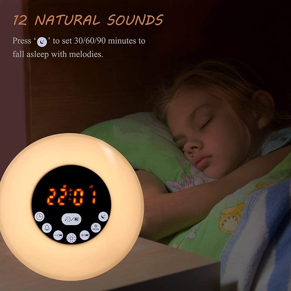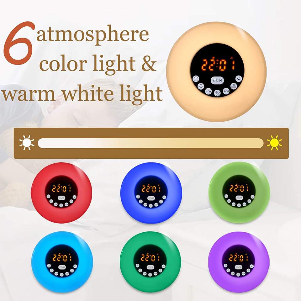 Réveil léger avec lever du soleil coucher de soleil Simulation Nature sommeil sons veilleuse double alarmes aide au sommeil horloge numérique
