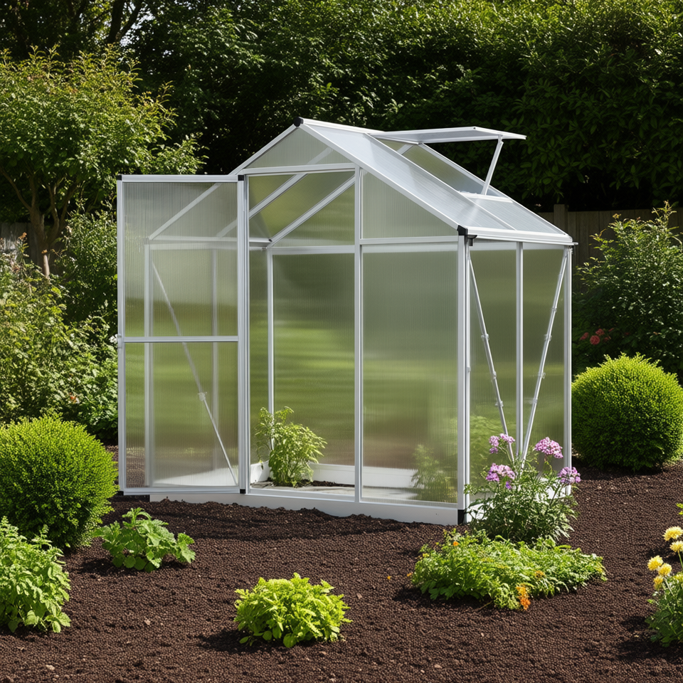 Serre en polycarbonate Walk In 4'L x 6'W avec aération de toit, structure en aluminium, style moderne