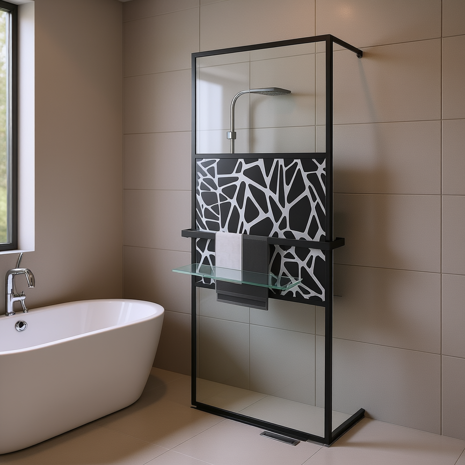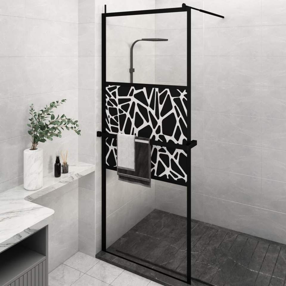 Paroi de douche walk-in 31,5x76,8 po en verre ESG avec cadre en aluminium et étagère, design contemporain pour salle de bain