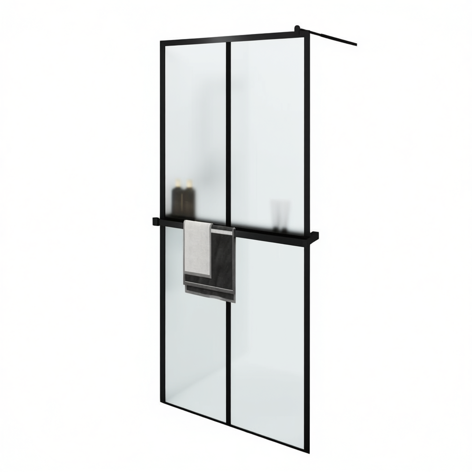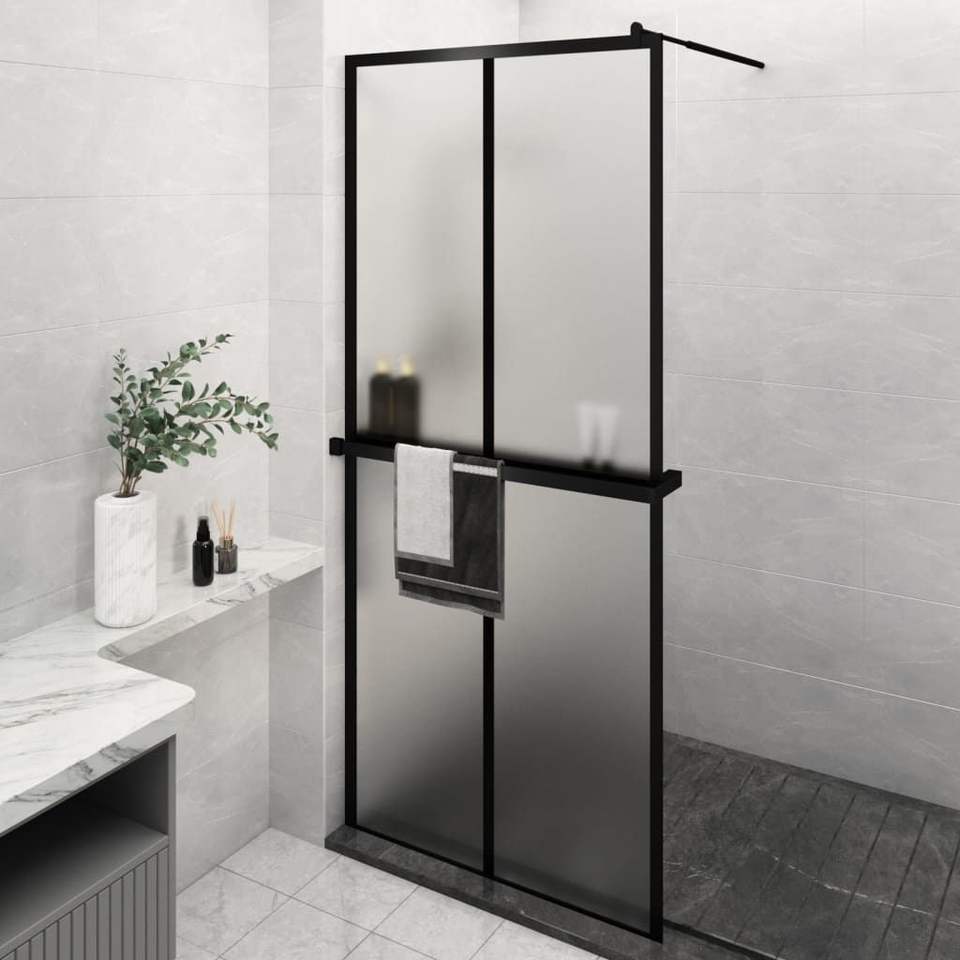 Paroi de douche Walk-in 39,4x76,8 pouces en verre ESG noir avec cadre en aluminium, salle de douche moderne