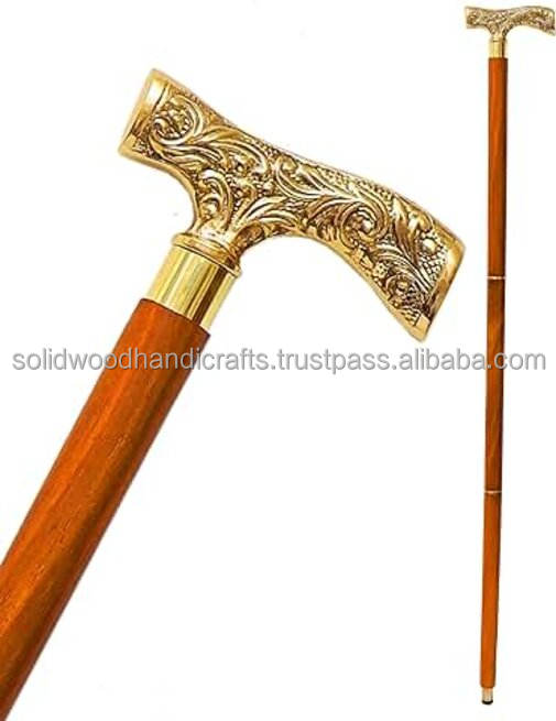 Canne de marche Canne en bois 100% en bois avec poignée en laiton décorative Utilisation quotidienne Hommes et femmes 36"