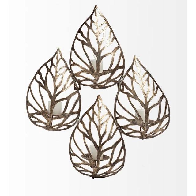 Wall Aluminium Candle Holders Toned Decorative Leaf Shaped Metal Candle Sconces for Living Room Dining Room Entryway Wall Decor