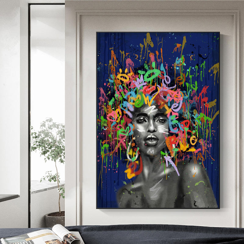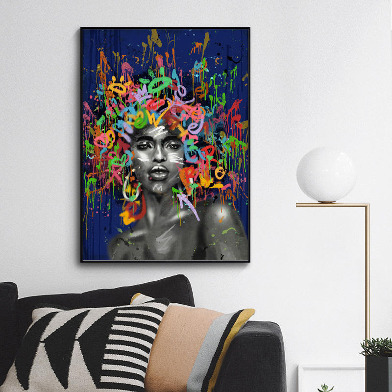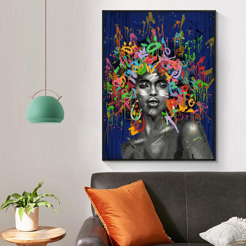 Wall Art Decor African American Black Girl Canvas Wall Art Watercolor Graffiti Prints Painting Artwork for Bedroom Living Room