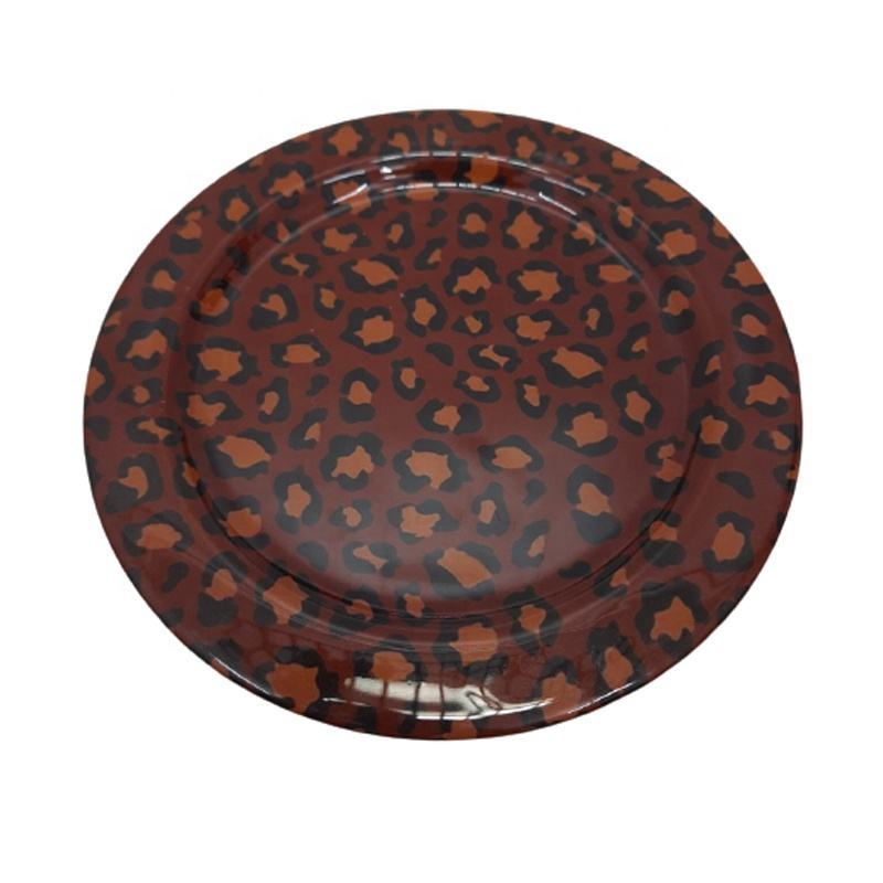 Wall Decorative Iron Round Enamel Plate Back Gold Color Sticker Printed Modern Design Dish and Tray for Serving in Restaurant