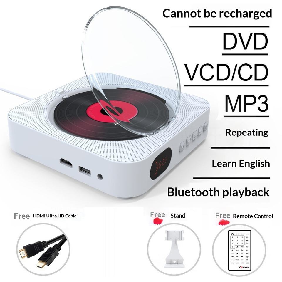 Lecteur de CD/DVD miniature mural pour l'apprentissage précoce des enfants en anglais, avec télécommande, portable, pour écran d'horloge-réveil