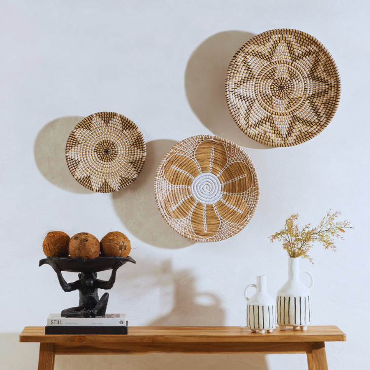 Set Seagrass Tissé Plaque Pendaison Décor Mural