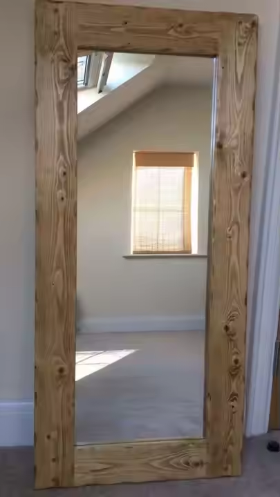 Azora Industries Miroir de salle de bain mural solide fabriqué à la main décoratif naturel forme personnalisée avec cadre en bois