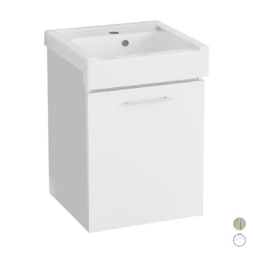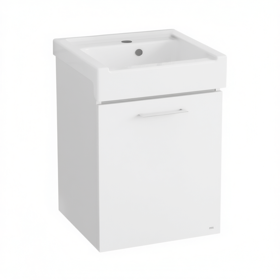 Meuble sous-vasque mural avec vasque en céramique à 1 porte, blanc classique, 50x50 cm, pour salle de bain