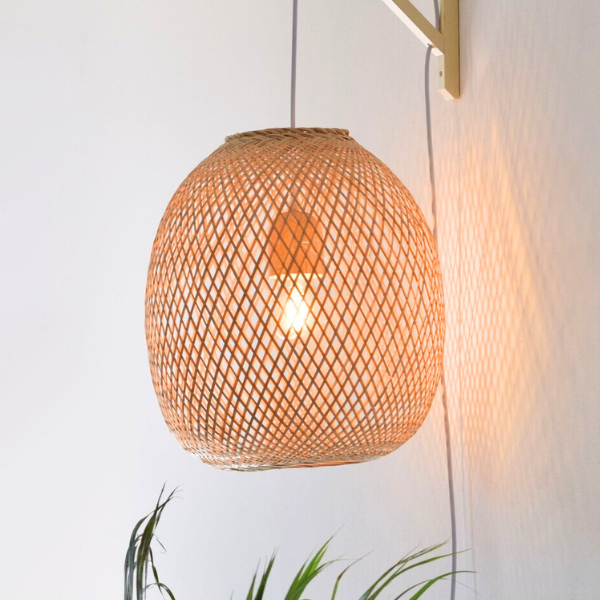 Lampe Murale Plafonnier Boule Ronde Abat-Jour en Bambou Suspension Applique Murale Style Bois Boho Abat-Jour Suspendu Tissé Naturel