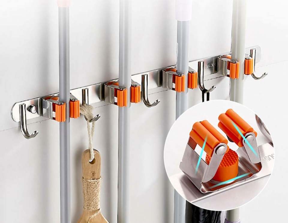 Organisateur mural multifonction en acier inoxydable pour outils de nettoyage et de cuisine, type à insertion par boulons, non pliable