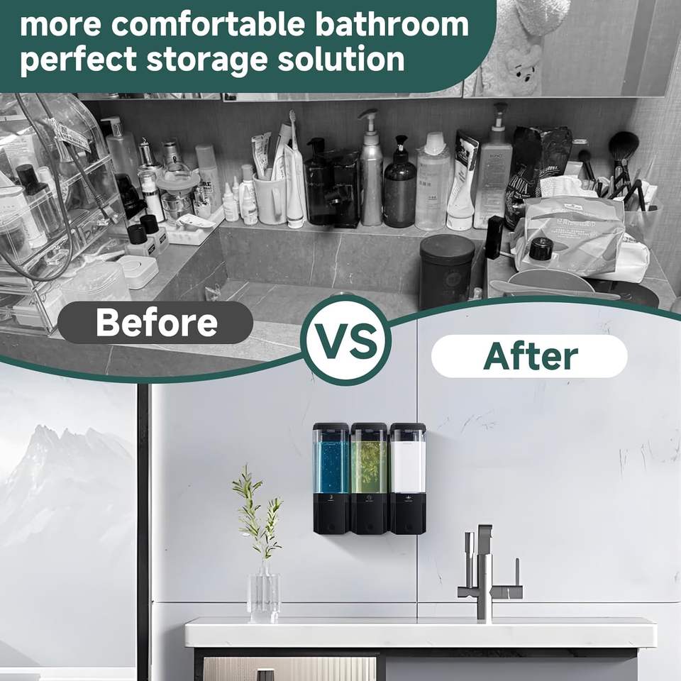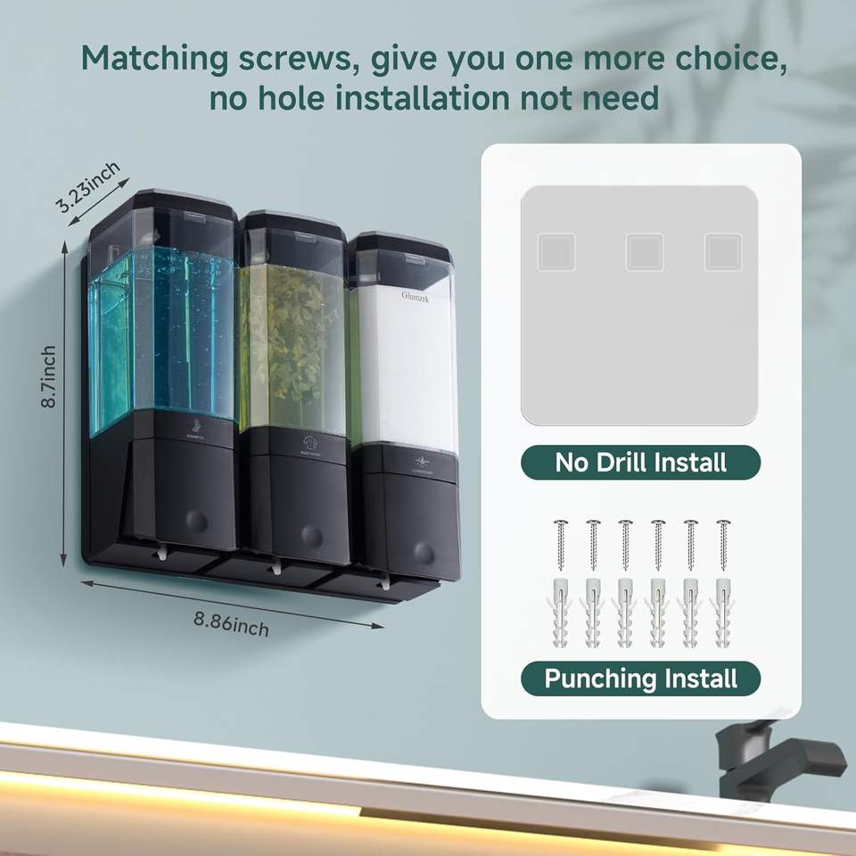 Distributeur de savon mural moderne à 3 compartiments en ABS, sans perçage, rechargeable, pour salle de bain