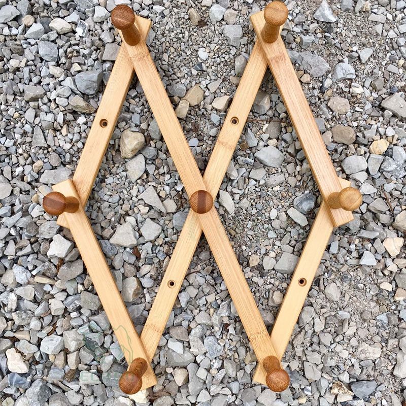 Porte-chapeau mural en bambou avec 6 crochets pour le rangement des vêtements dans un petit espace