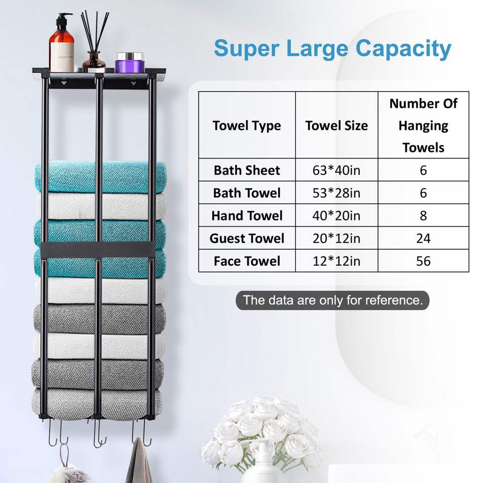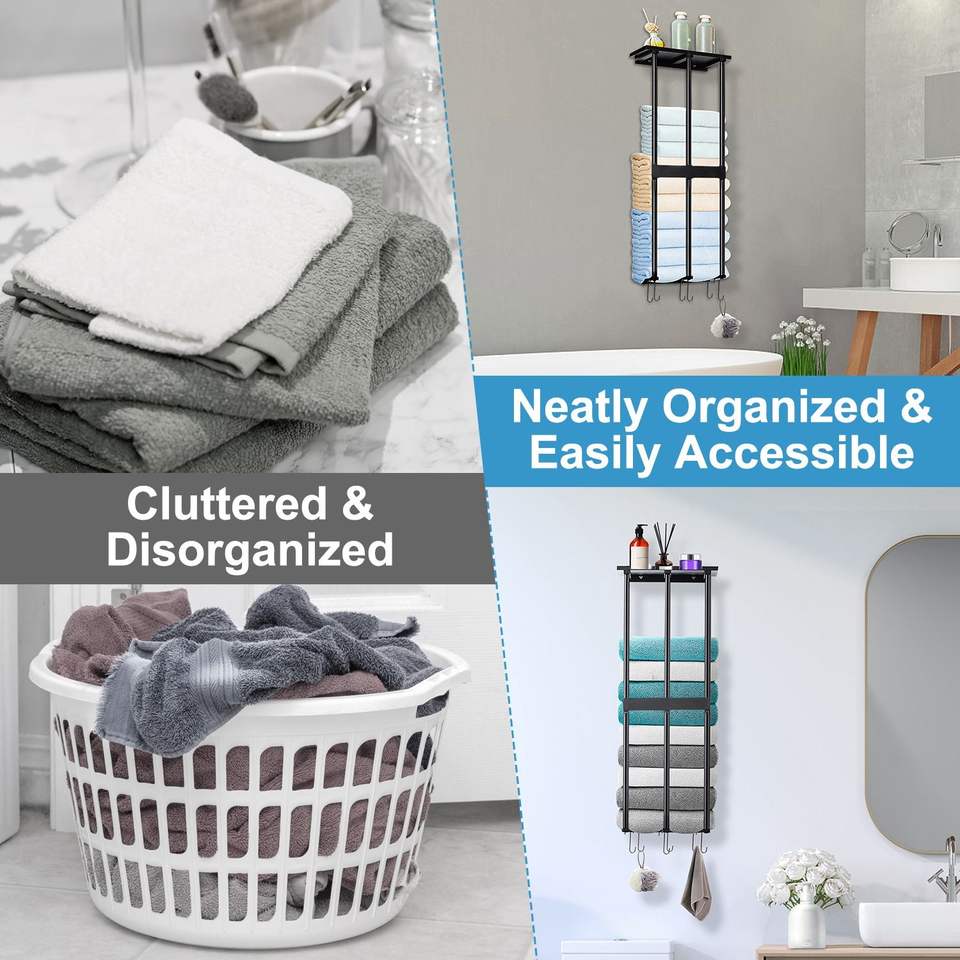 Étagère murale de rangement pour serviettes de bain et de toilette, idéale pour serviettes enroulées