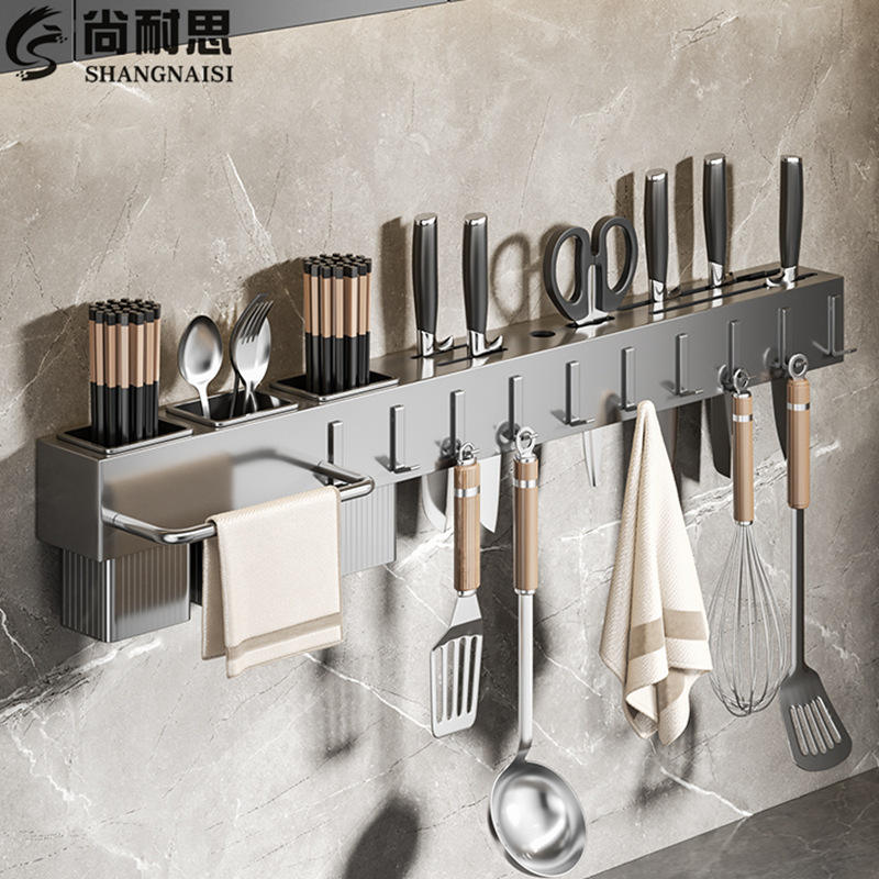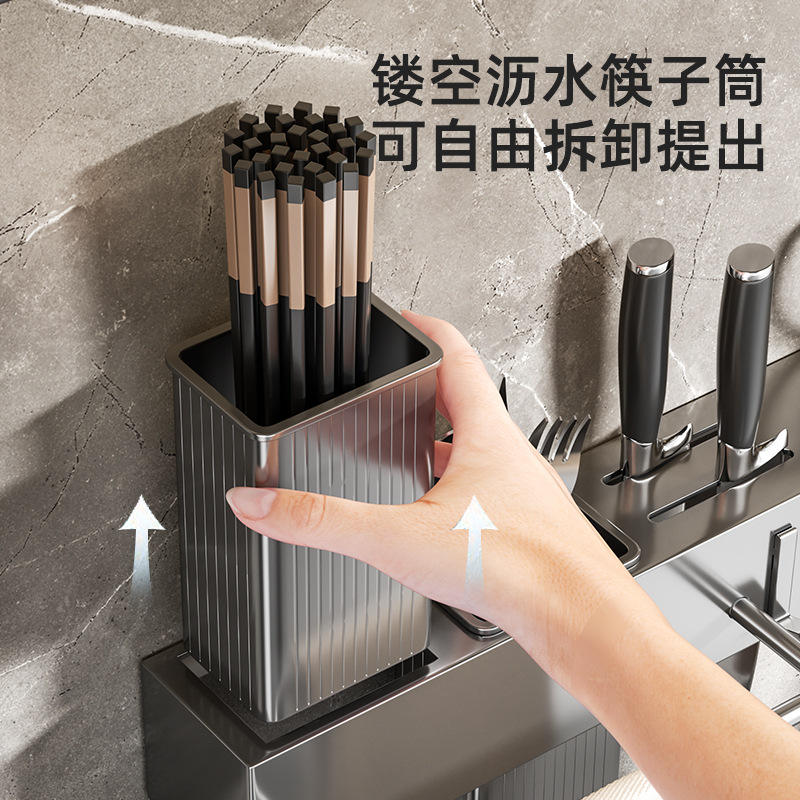 Support mural rectangulaire en acier inoxydable pour baguettes, avec égouttoir, pour ustensiles de cuisine