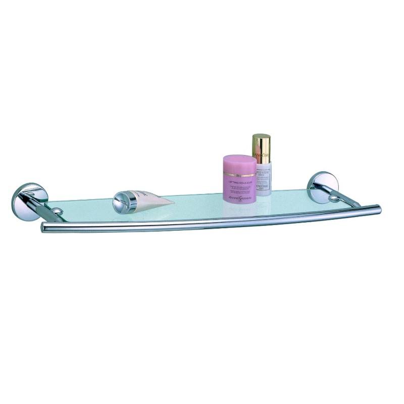 Étagère en verre trempé avec base en alliage de zinc chromé à montage mural pour salle de bain, design classique, 500 mm