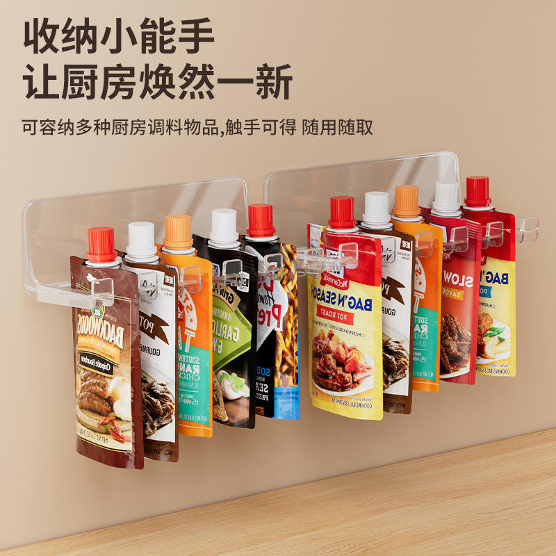 Wall Mounted Condiment Storage Rack Rectangle Punch Free For Kitchen Seasonings Organizing